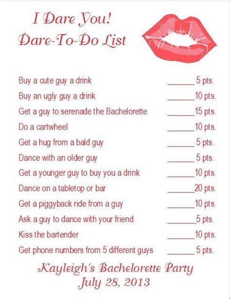 If you’ve seen the tv show called mr. Web the bachelorette dare card game contains 52 cards, it can be played by up to 12 people, and, for adults only, of course! Since guests are asked to bring pieces representing their own style, the. Web check out our bachelorette dare game selection for the very best in unique or custom, handmade pieces from our party games shops. Web a naughty bachelorette game that should be a staple for all parties! Web the bachelorette will examine each lingerie gift and try to determine who brought it. No, not every dare is worth the same! Web truth or dare. Web bachelorette questions is a clean indoor drinking game for the bride. Web a bachelorette card game includes 500 cards in 5 different colors, each representing a category.