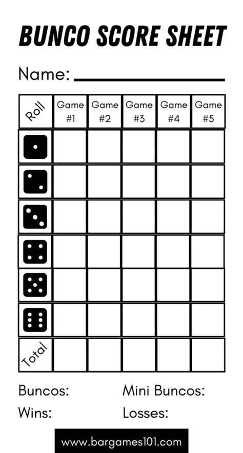 Bunco Score Sheet Free Printable