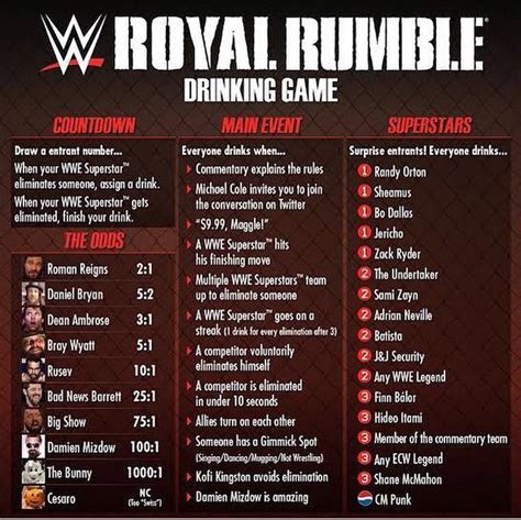 Royal Rumble Drinking Game. Web the women's royal rumble match was full of fun moments and big surprises. These are the rules i am pitching.