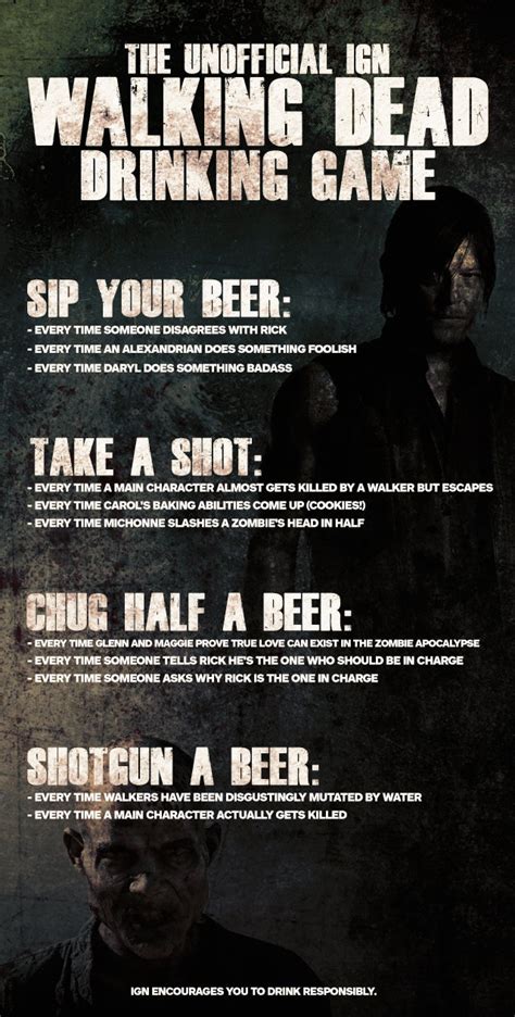 Take a sip of your drink: Anytime rick saves the day; Anytime daryl aims his crossbow;. Web drinking game for the walking dead show: Web drinking game for the walking dead : Web with that, we present to you the walking dead drinking game*: Web drink if a walker grabs hold of someone and, instead of simply biting them, just opens its mouth and yells at the person's skin for a few seconds. Take a drink whenever rick says corrrallll! take a drink when someone dies. Or the show will work hard to make us think he’s evil and then pull the rug out by having. Press j to jump to the feed.